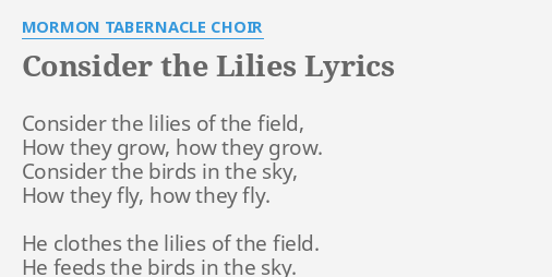 The 'here and now' is no trade off for the long term goals. Christian standard bible "consider how the wildflowers grow: Consider the lilies of the field, how they grow: Apr 01, 2010 · consider the lilies of the field poem by christina georgina rossetti. They toil not, neither do they spin: